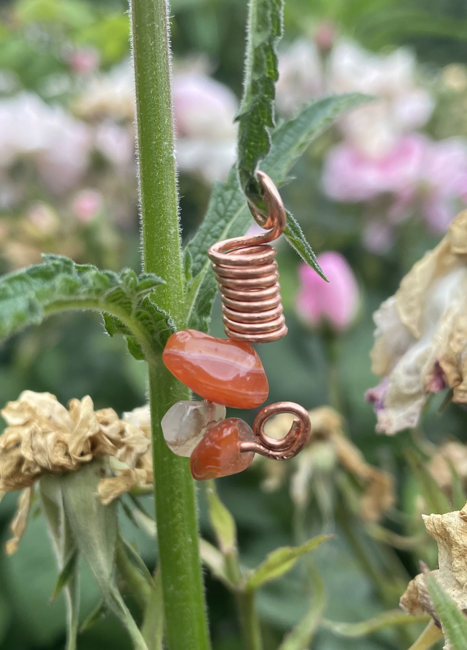 Keep your pieces dry, avoid submerging in water, and store them in a soft pouch or box. Copper and silver wire may naturally darken over time—this adds character, but you can gently polish with a soft cloth if desired.